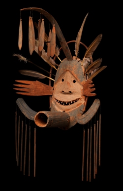 “DONALD ELLIS, a leading dealer in Native American objects, is so excited about what he is exhibiting at New York’s Winter Antiques Show he looks as if he might break into a ceremonial dance himself. He gestures to what he describes as “among the most extraordinary objects I’ve owned in my 34-year career.” You needn’t be an expert to understand the power of these pieces, which include two 19th-century ritual masks made by Yup’ik-speaking Eskimos. One features a shaman astride a big wide-eyed seal; the other a large smiling face with a protruding open mouth. Both have arms stretched wide to welcome the spirits, and both are decorated with feathers. (Yes, American law forbids the sale of feathers from eagles and migratory birds; these masks recreate the effect with the plumage of domestic fowl, like swans and geese.) The third of Mr Ellis’s treasured objects is a carved caribou antler club from Northern British Columbia. The sculptor would seem to be influenced by the soaring abstract works of Brancusi, except that this piece was made in the 18th century.”