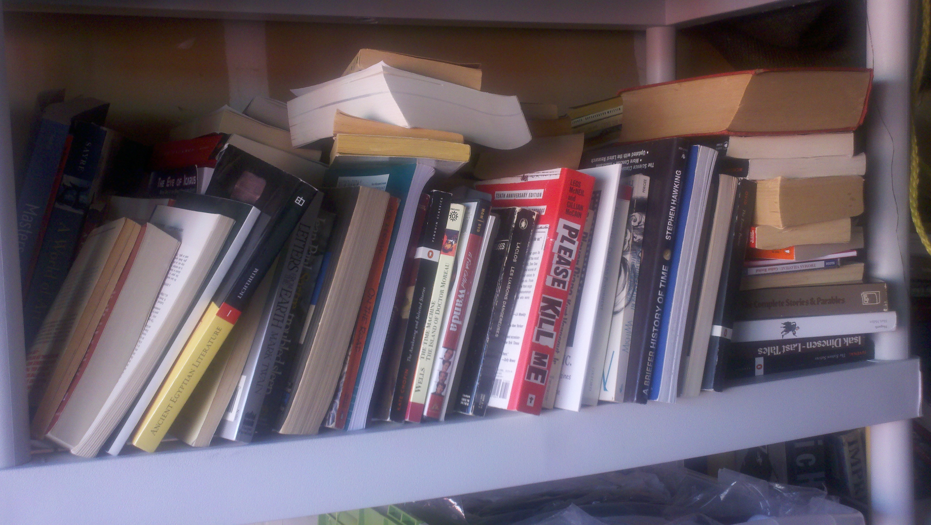 Some I have read, some I still need to read. I have anthologies of ancient Egyptian writings, books on the history of Punk Rock, some Mark Twain, some H.G. Wells, William Hogarth, and a big old hardback opus on Impressionism.
